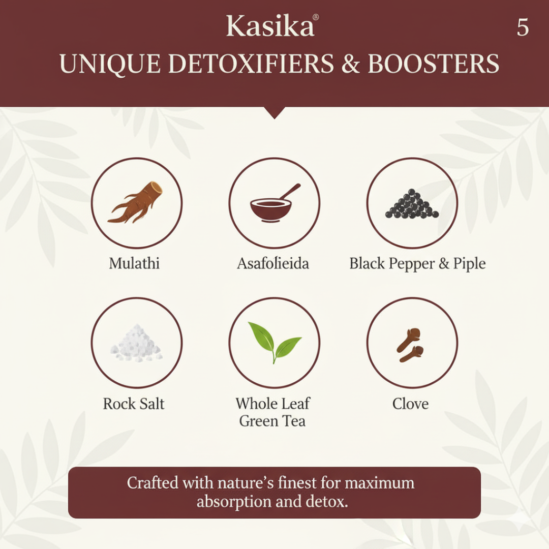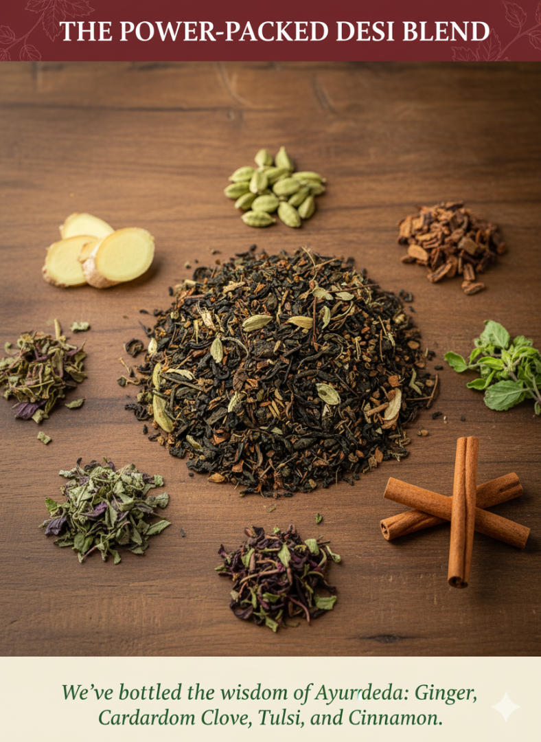 | Traditional Spice Blend | Infused with Ginger, Black Pepper, Tulsi, and Clove to naturally boost immunity and fight seasonal discomfort. |
